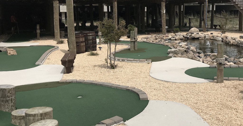 North Beach Mini Golf is located on the far west side of Atlantic City where new boardwalk has just been constructed. This also means it is away from the casinos and most of the tourists, so you are in a pretty isolated area if you don’t want to be mobbed in the summer. The course doesn’t really have a theme (although it does have some AC themed holes in the beginning) but it is beautifully landscaped and clearly well kept. Par for the course was a 40 and one of our members finished up with a 36, so it’s not going to be the most difficult course you’ll play, but I don’t think that is what they were going for.