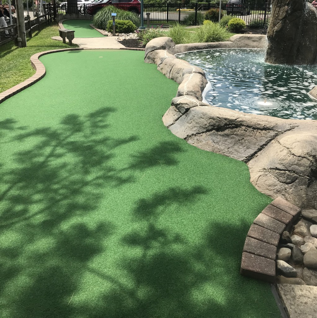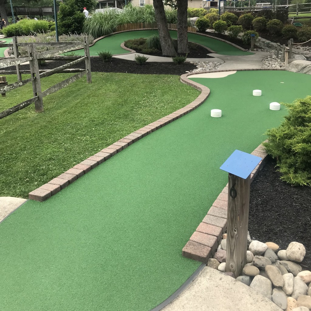 While it doesn’t offer the windy intricacies of Pine Creek Miniature Golf about 15 minutes north, the course is still beautifully maintained with long greens and challenging putts. We had a bit of an off-round; par was 40 and our winner came in at 41, and even secured a free game! There were a few interesting holes that we hadn’t seen before, but overall this was a standard, up-scale course. The price was only $9/person, and you get $2 off per person for a second round. If you are looking for a more standard miniature golf outing in the Mercer County area, but one that is still cared for and well-kept, Pennington Golf Center is definitely a great bet!