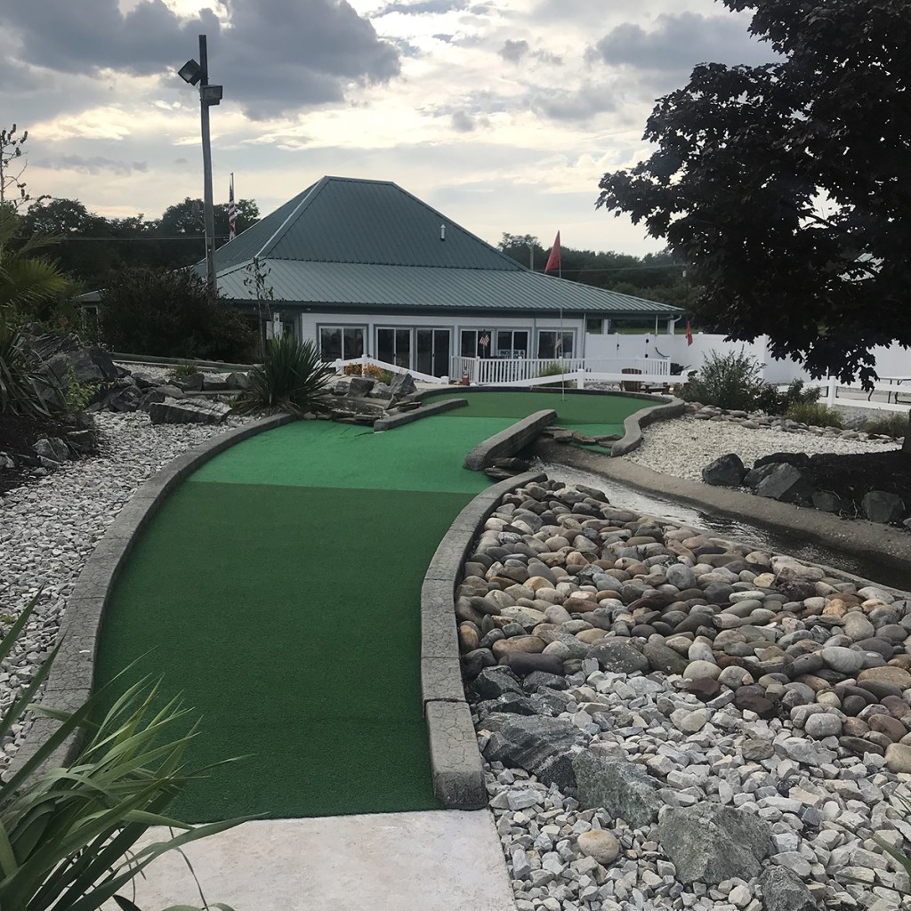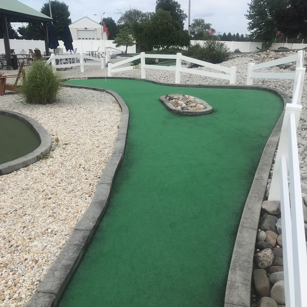 Jersey Devil is a more expansive Harris Golf course, but it doesn’t feature their signature bricks, instead opting for a concrete barrier. It looks like the course is in the middle of resurfacing the holes, even since the Winter Classic in February. The holes that are resurfaced with the darker turf are very crisp but do play quite slow. However, the carpet they are replacing still appears on some holes and plays quite fast, making it difficult to get in rhythm. However, our biggest gripe at this course appears to be the patch work they have done on certain holes that actually disrupted the putting. It was clear that there were certain holes that were also in desperate need of repair, with huge gashes, and one where the tee box was completely flooded (we had a storm the previous night, but this should have been cleaned up by 3pm when we arrived).