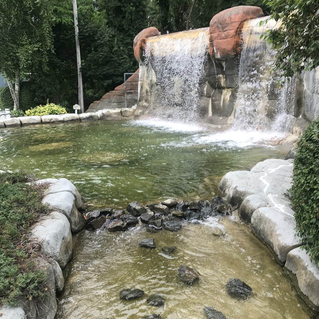 The course is pretty much your standard mini-golf course, with a small water hole, and various hills and slopes. The faux-cement bricks were especially difficult to bank off. Our biggest gripe here (and this happens at several other courses as well) is that no one abides by the 4 person/group maximum. When the course is fairly empty, we guess it doesn’t really matter, but we arrived when it was fairly crowded, and the group behind us was playing with 5 adults and 4 children, one of which was carried in a wagon. This slows the entire experience down considerably, and it really is the fault of the cashier who should know how many people are taking part at the beginning and at least try to break up the group.