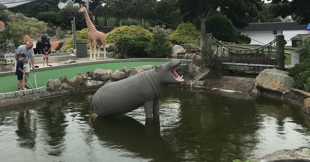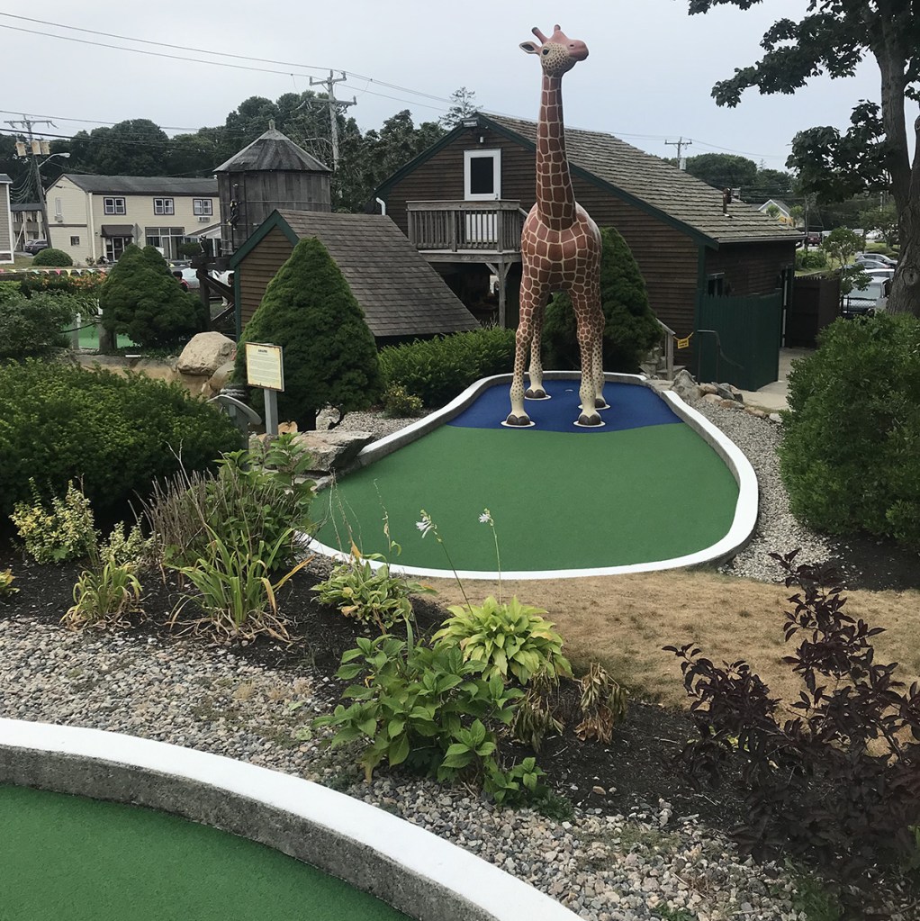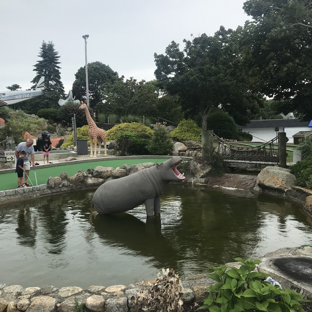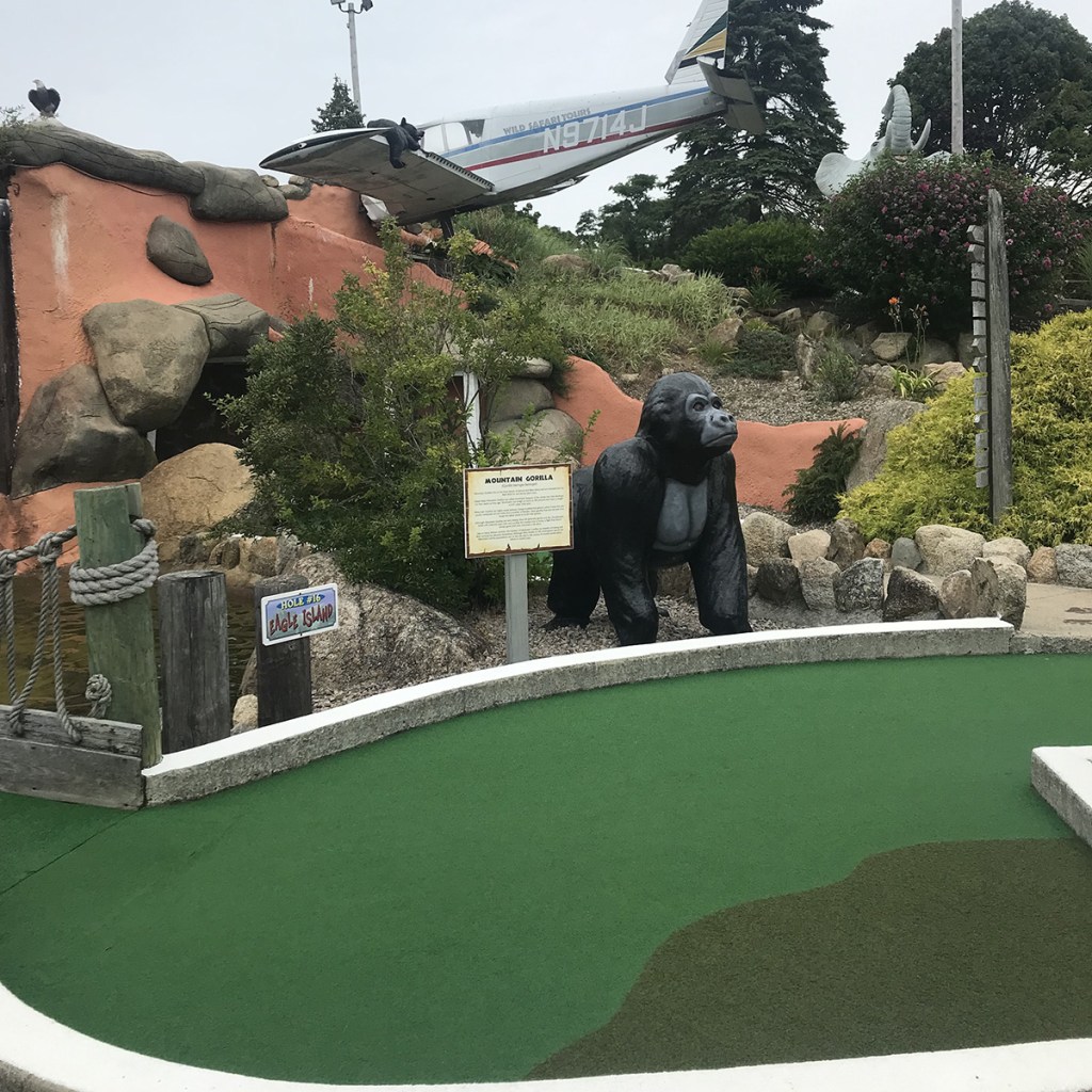One of the real gems on our Cape Cod adventure was discovering Wild Animal Lagoon. This expansive course throws you right in the middle of a safari, your plane logged in a hillside next to a large waterfall guarded by a lion.