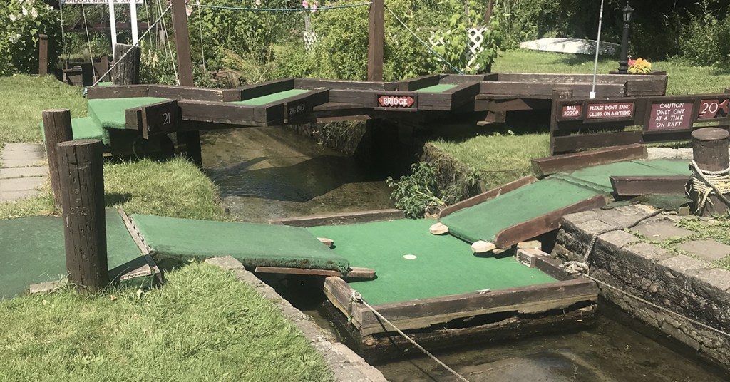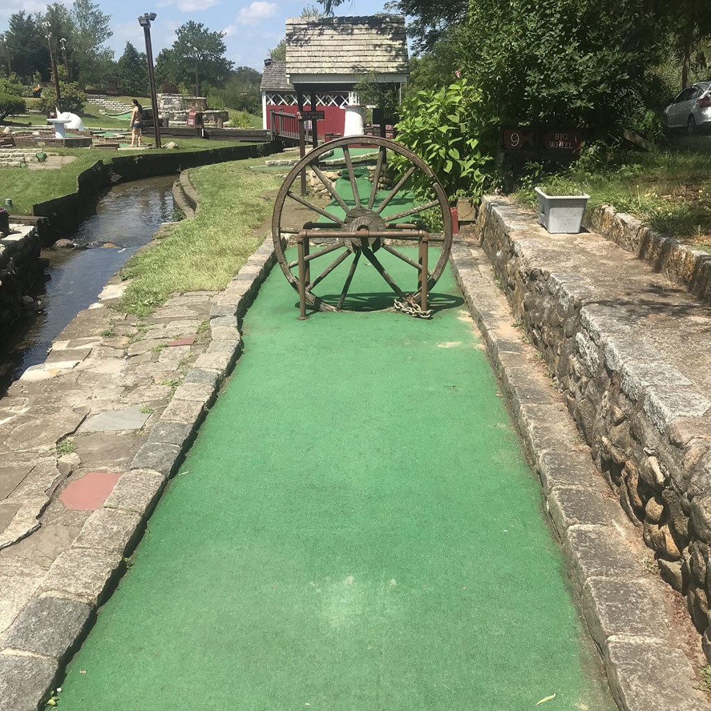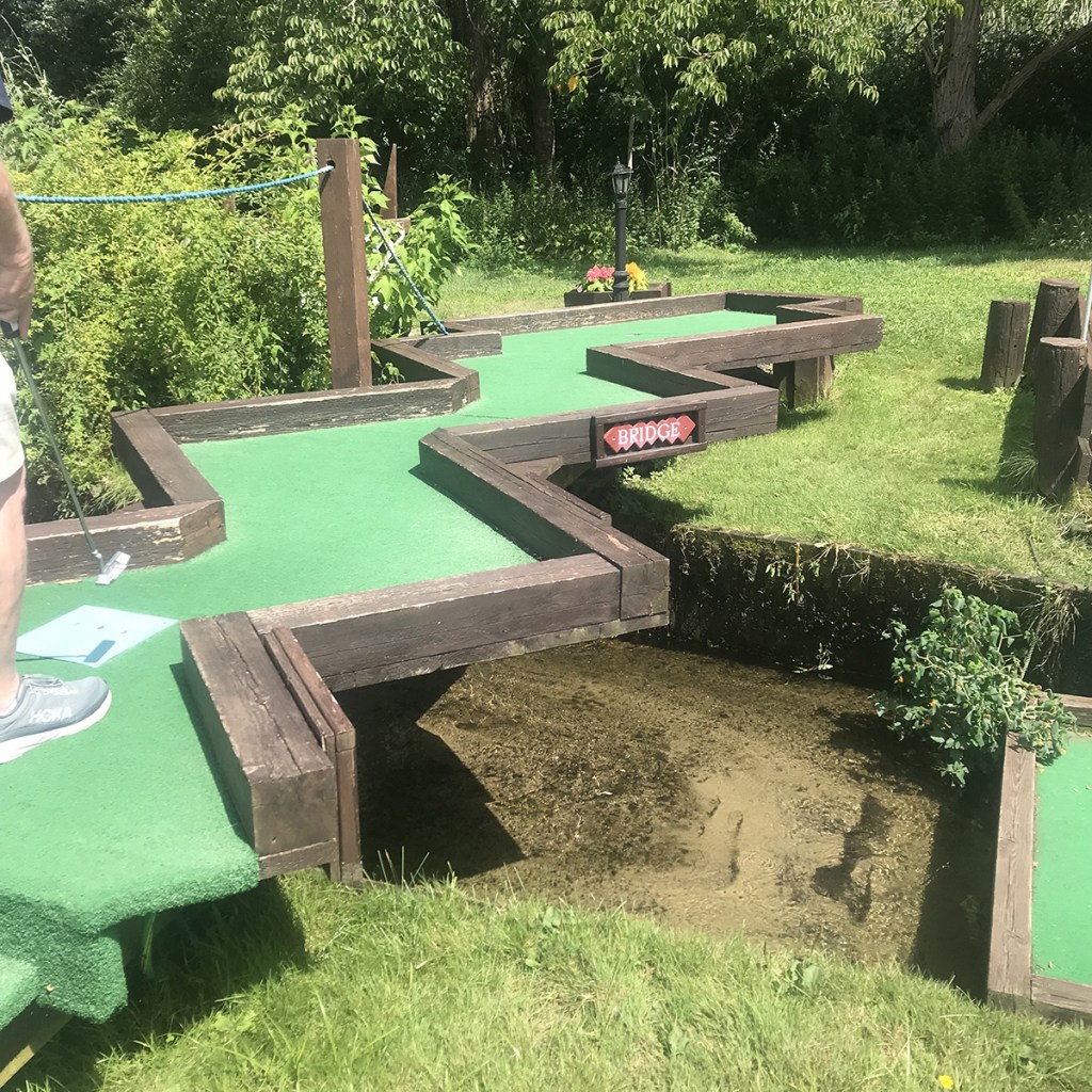 If we are being perfectly honest, no, the course isn’t in perfect condition. There are some rain spots, some of the turf was mismatched, and it also featured metal cups. We’ve also realized we are not a fan of Belgian block given how unpredictable the bounces are. However, there is a difference here between a handmade, quirky, family owned and operated course that may not be as perfectly carpeted or have all the intricate obstacles, versus a course like Paramus Mini Golf, which was built by a corporation and has now just fallen into disrepair. We can’t put the atmosphere or quality on the same scale as Lake Hopatcong Golf Club, but maybe another comparison would be a more rustic Waltz Golf Farm.