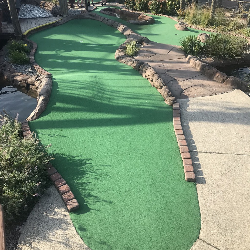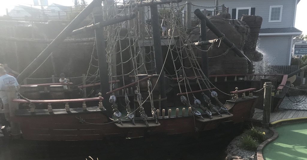 There is nothing particularly flashy about the Pirate Island courses, but they certainly aren’t basic or boring. Similar to Arnold’s in Cape Cod, while they call it a pirate-themed, the only real pirate accessory is the ship, which only comes into play on the 18th hole (but is clearly visible from the street). There are a couple hidden gems in the walls and caves, but it’s doesn’t lean into the theme as much as Pirate’s Cove. The course also benefits from being right near the bridge as you come into Ocean City, and you can see most of the holes from the street as well.