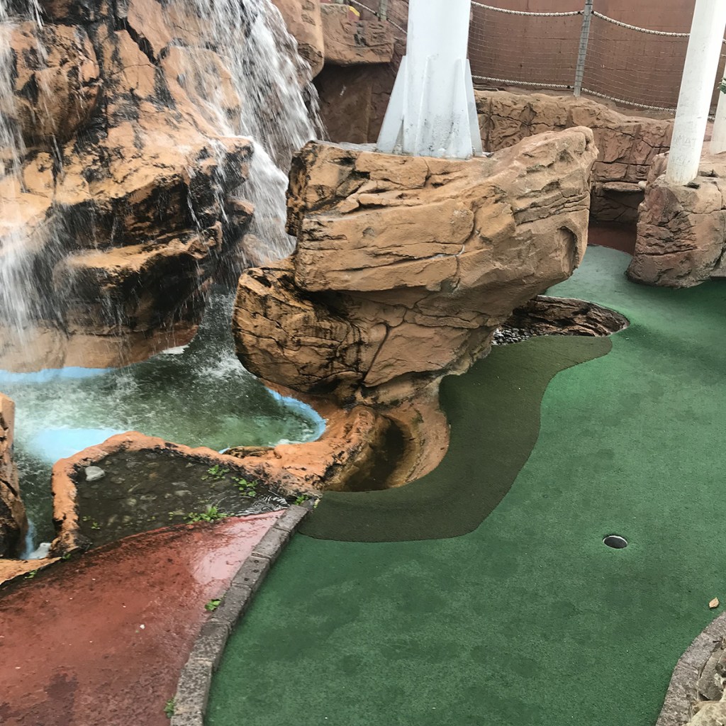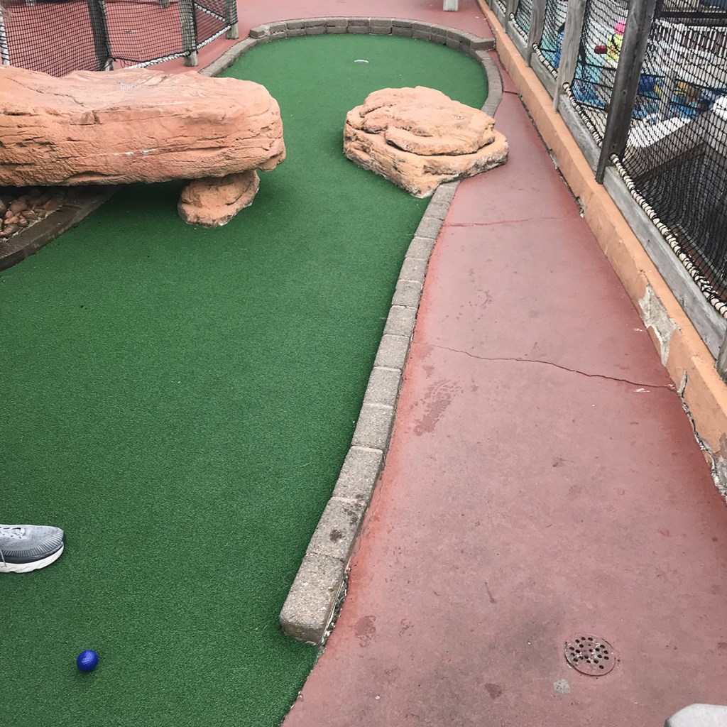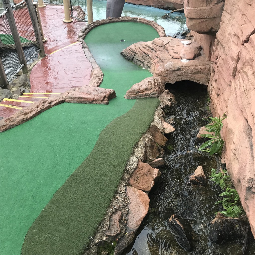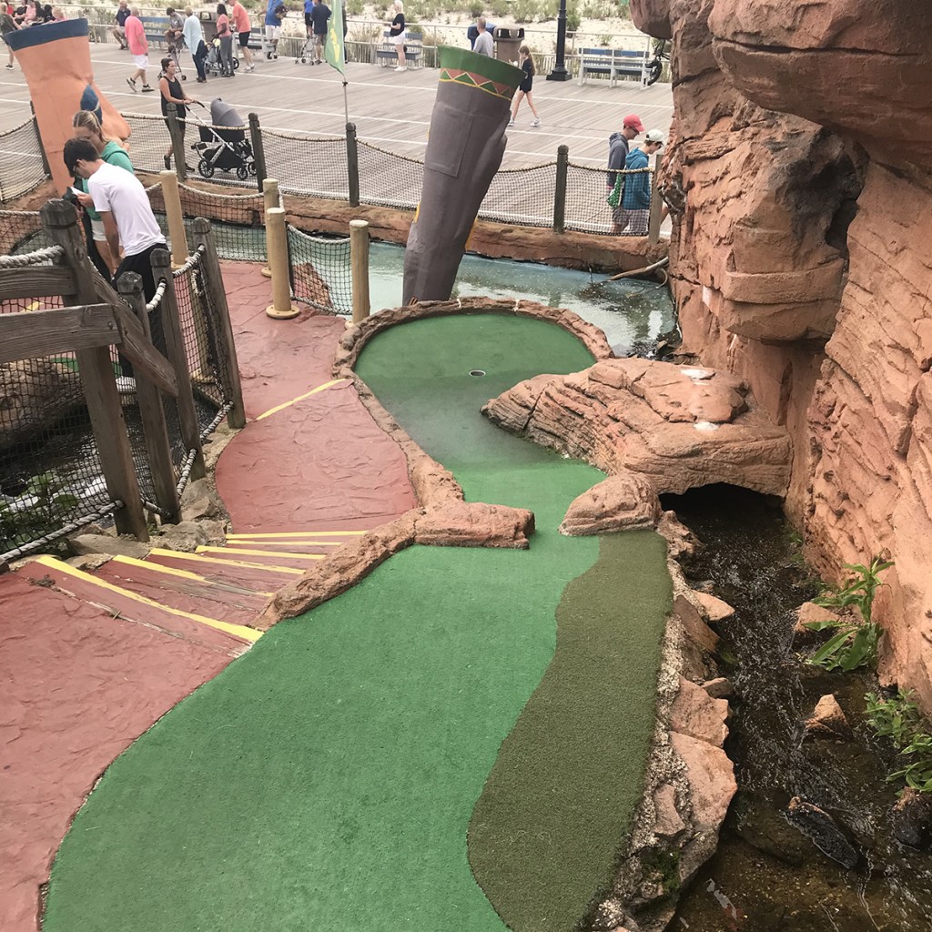 While this is sometimes one of our favorite courses on the Boardwalk, the past few times we have been here the course has been plagued by severe flooding issues on some of the greens. Some water is clearly expected, but we are talking about large puddles on multiple holes. There are several areas where the large drips from the slides above are down right annoying. On a bit of a positive note, the course doesn’t seem to have water damage necessarily; it appears to hold up well to the punishment. However, the large amount of water can easily make the pavement extremely slick.