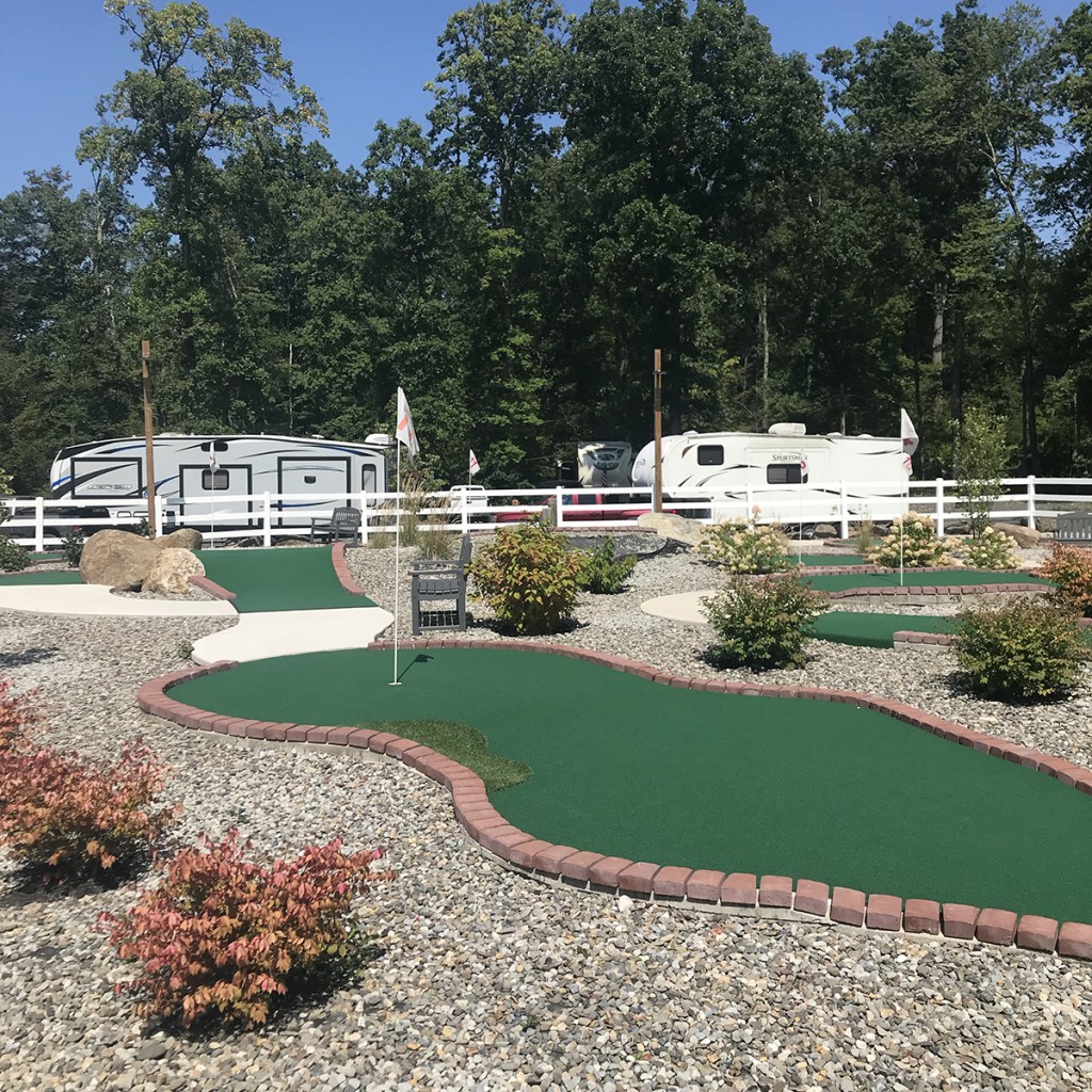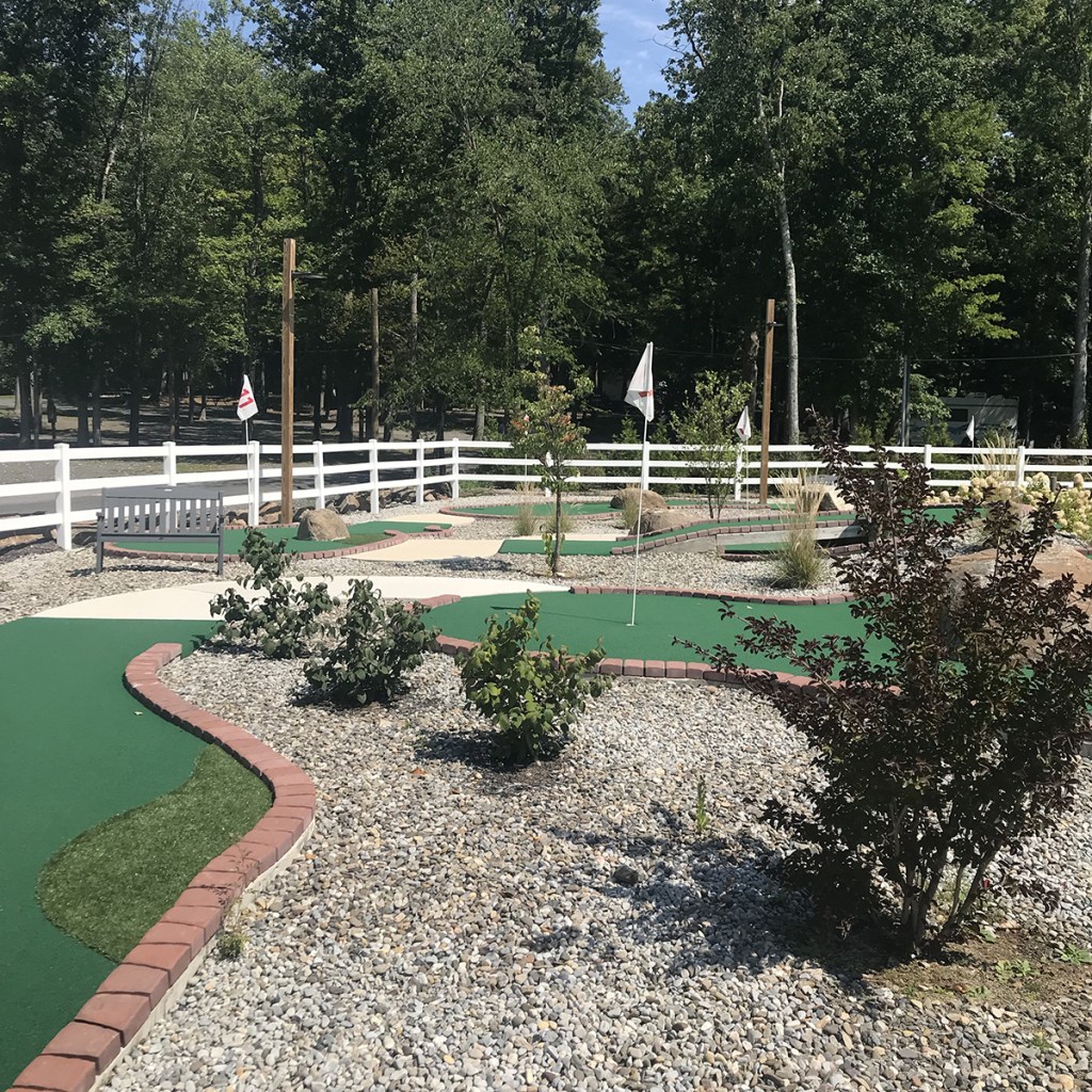 Our only real downside other than the difficulty was that there was no shade on the entirety of the course. It’s a small course, but on a 90+ day, the need for shade was real. Not only did the course look top notch, but it even looked like it had been swept of debris that day. Again, pretty impressive for a campground where your mini golf clearly isn’t the main attraction.