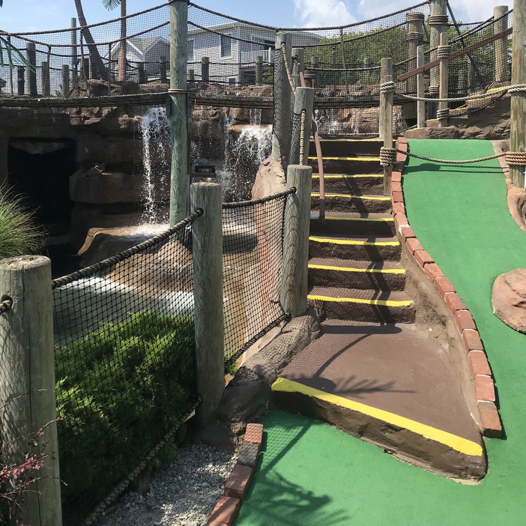 There is nothing particularly flashy about the Pirate Island courses, but they certainly aren’t basic or boring. Similar to Arnold’s in Cape Cod, while they call it a pirate-themed, the only real pirate accessory is the ship, which only comes into play on the 18th hole (but is clearly visible from the street). There are a couple hidden gems in the walls and caves, but it’s doesn’t lean into the theme as much as Pirate’s Cove.