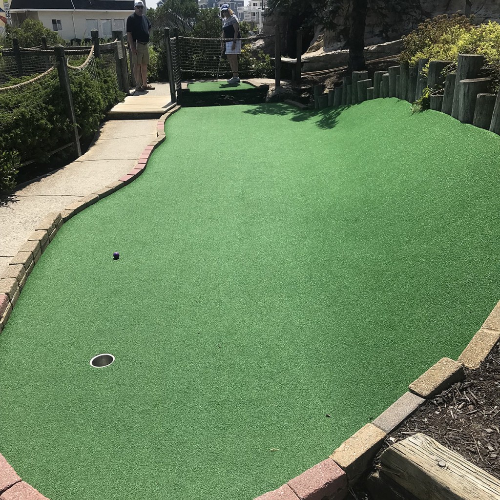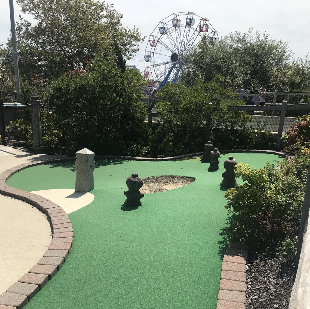Settler’s Mill is another mini golf course on Long Beach Island, but it’s one of only two on the south side of the island (the other being another 36-hole course called Mr. Tee’s). We understand that the course just finished re-carpeting before the season, so it was definitely in good condition, and we were excited to see what this course had in store!