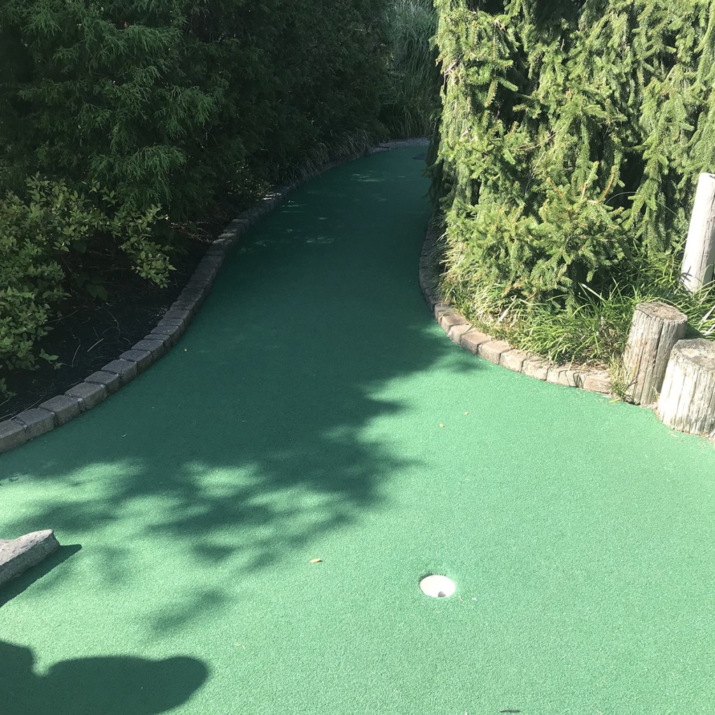 As we started out on the course, it was definitely more of a compact course than the ones we had played earlier in the day at Lost Treasure and Waters Edge. We joked after those 36 hole courses we needed a bit of a “palette cleanser.” Unfortunately, while the course was enjoyable, the atmosphere takes a little bit of a hit in our experience.