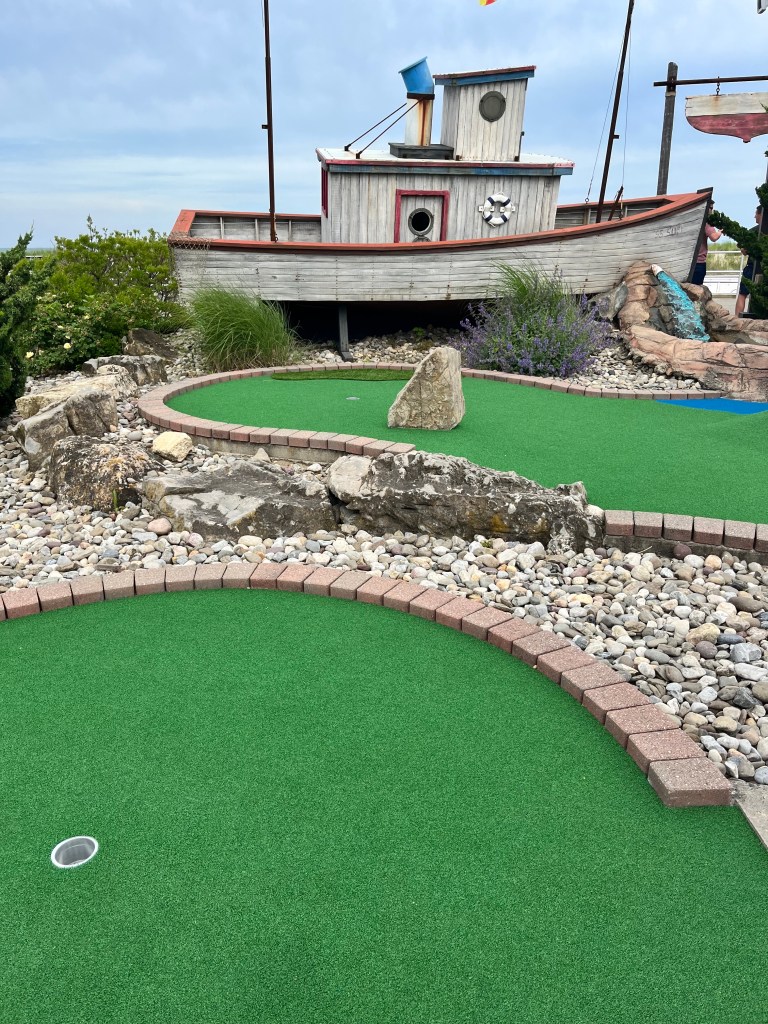 We’ve stopped at Shipwreck Island many times as it is a nice halfway point on our way home from Ocean City. The Harris course is always extremely well kept, and the turf always looks like it has been freshly replaced. The only thing going against the course is it mostly flat, you aren’t going to see any steep elevation changes or tremendously long puts. Most of the holes can be two-putted, although it does play more difficult than you would think, and you can easily get carried away if you aren’t focusing on your putts. Despite metal cups and the fact that holes 18 is just a simple ball return, the holes aren’t overly simple, they can definitely provide a competitive atmosphere.